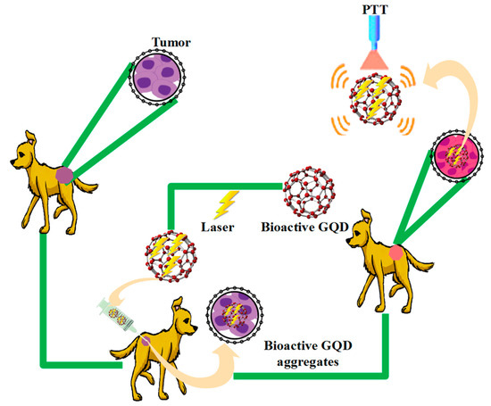 Tumor treatment with the PTT method based on bioactive GQDs.