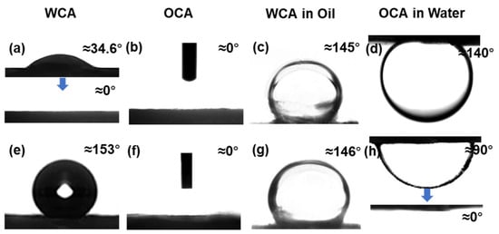 - Wu, J.; Wei, W.; Zhao, S.; Sun, M.; Wang, J. Fabrication of highly underwater oleophobic textiles through poly(vinyl alcohol) crosslinking for oil/water separation: The effect of surface wettability and textile type. J. Mater. Sci. 2016, 52, 1194–1202. [Google Scholar] [CrossRef]