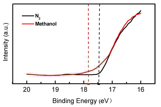 Figure 8. UPS spectra of EML with or without methanol vapor annealing.
