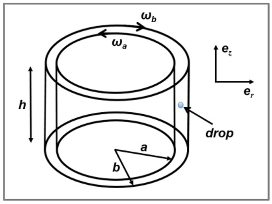 Real mixing devices involve complicated flow fields, and since the deformation and break-up of droplets in such processes are more or less impossible to describe, most authors interpret the results they obtain, at least qualitatively, based on a description of particle break-up in simple flow fields. Taylor [24] carried out two basic experiments: he started by investigating the deformation of single Newtonian particles suspended in a second immiscible Newtonian continuous matrix under simple shear flow by means of a Couette type-apparatus (Figure 1) made up of two counter-rotating concentric cylinders. The speed of the two cylinders was adjusted to maintain a droplet in one position while being subjected to deformation at a shear rate of .