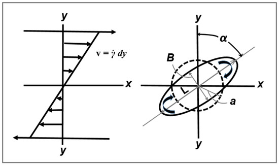 In a simple shear flow with an affine deformation, if the conservation of volume condition is employed, a spherical droplet with an initial diameter ‘a’ bedomes deformed into a fibril with the smallest dimension B (see Figure 7b) according to [17]: