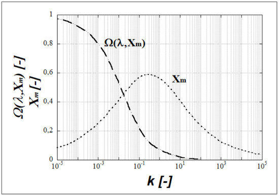 Curve of Ω(k, X) for a viscosity ratio k = 0.91. Adapted from [39].