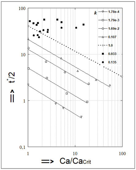 for Ca << 1 and 0 < k ≤ 1, where is the dispersed phase fraction.