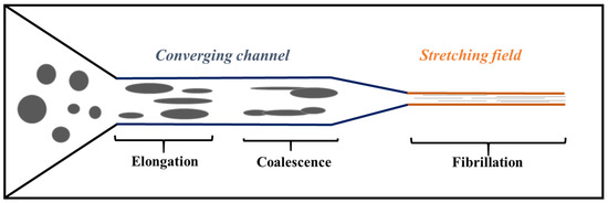 - Mighri, F.; Ajji, A.; Carreau, P.J. Influence of elastic properties on drop deformation in elongational flow. J. Rheol. 1997, 41, 1183–1201. [Google Scholar] [CrossRef]