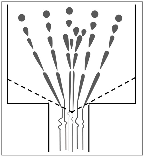 - Mikami, T.; Cox, R.; Mason, S. Breakup of extending liquid threads. Int. J. Multiph. Flow 1975, 2, 113–138. [Google Scholar] [CrossRef]