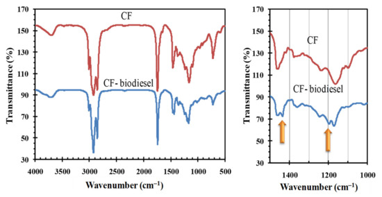 FTIR spectra of CF and CF-biodiesel.