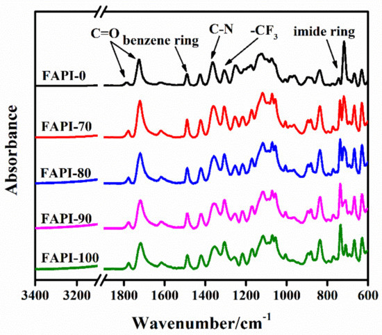Similarly, a series of FAPI films with different molar ratios of BPDA/6FDA, including FAPI-0 (BPDA/6FDA = 0/100), FAPI-80(BPDA/6FDA = 80/20), FAPI-90(BPDA/6FDA = 90/10), FAPI-100(BPDA/6FDA = 100/0), have been prepared, successively.