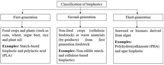 Currently, bioplastics have been developed in three different generations based on the types of feedstock used for the fabrication. The classification of bioplastics with relevant examples is depicted in Figure 1. Each generation of bioplastics has its respective advantages and disadvantages. Therefore, in-depth understanding of the properties of bioplastics is crucial to devise appropriate modification methods to suit different applications.
