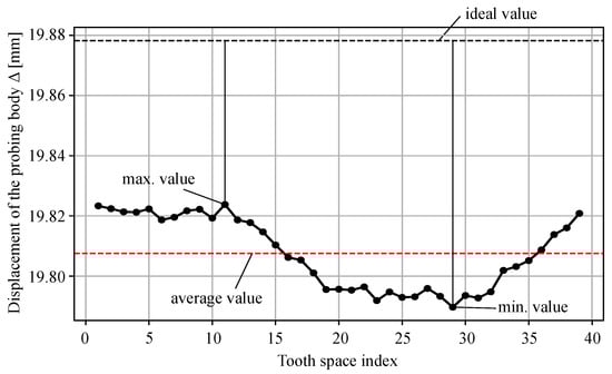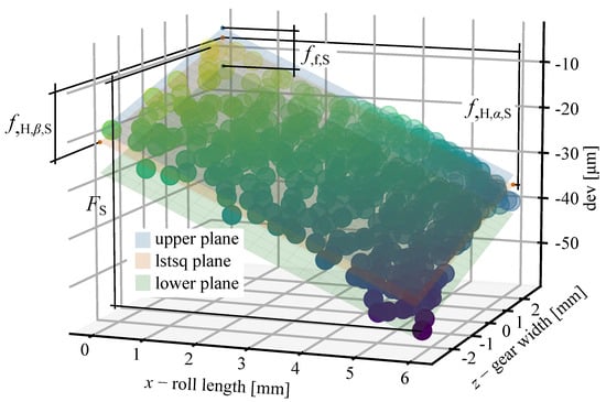 - The developed parameter proved to be effective in evaluating the shrinkage that can occur in the injection moulding process, whereas the standard quality parameters are incapable of determining it. The average value of parameter of all the gears was 29.4 m, whereas the average value of was −21.8 m. Here, the negative value of the parameter is directly associated with moulding shrinkages. The developed areal parameters , , , and proved to be advantageous in characterising the deviations on the teeth more comprehensively.