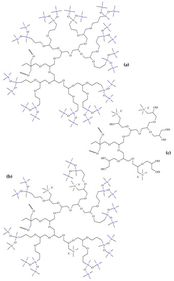- Parzuchowski, P.G.; Świderska, A.; Roguszewska, M.; Rolińska, K.; Wołosz, D.; Mamiński, M. Hyperbranched poly(ether-siloxane)s containing ammonium groups: Synthesis, characterization and catalytic activity. Polymers 2020, 12, 856. [Google Scholar] [CrossRef]
