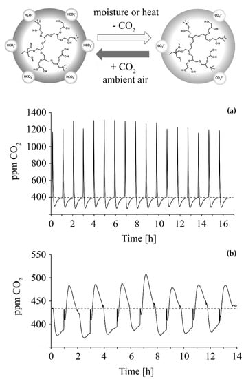 - He, H.; Li, W.; Zhong, M.; Konkolewicz, D.; Wu, D.; Yaccato, K.; Rappold, T.; Sugar, G.; David, N.E.; Matyjaszewski, K. Reversible CO2 capture with porous polymers using the humidity swing. Energy Environ. Sci. 2013, 6, 488–493. [Google Scholar] [CrossRef]