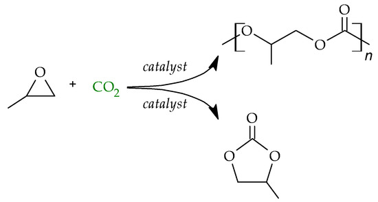 The original catalyst applied by Inoue et al. was a mixture of diethylzinc and water. This catalytic system was significantly improved in CCTP laboratories by Professor Witold Kuran and his students, who replaced water with organic compounds having two or more active hydrogens, especially trihydric phenols and dicarboxylic acids [5,6,7]. It should be noticed that Dr. Andrzej Rokicki, a student of Professor Kuran, continued this research in Air Products and Chemicals Inc. and was a member of the team that developed a very effective catalyst for the synthesis of poly(propylene carbonate)—this product of the reaction between zinc oxide and dicarboxylic acid was the first catalyst system used in industry [8]. Nowadays, for the copolymerization of CO2 with propylene oxide and other oxiranes, mainly mono- or bimetallic complexes with a well-defined structure are used, especially derivatives of Zn, Co, and Cr [9,10,11].