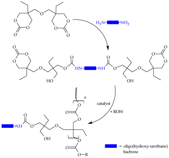 The second most important pathway to NIPUs is based on the synthesis of PHUs in the reaction of bis- and multi(cyclic carbonate)s with aliphatic di- and polyamines (Scheme 10).