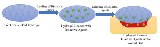 | Hydrogels | They are used as potential drug delivery systems in wound dressing applications and display other interesting properties such as high porosity, high swelling capacity, excellent biocompatibility, etc. | The biopolymer hydrogel dressings demonstrate poor mechanical performance that makes them not compatible with the human skin. | The drug release profiles were controlled release of bioactive agents from the polymeric hydrogels, resulting in an improved wound healing process. The high porosity of the hydrogels led to good swelling capability. |