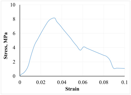 Figure 2. The sample is characterized by a normal fracture stress (8.72 ± 1.38) MPa and a relative fracture strain of 0.036 ± 0.001 (3.6 ± 0.1%). The Young’s modulus is determined by linear regression of the stress–strain dependence for strain values less than 3%. Its value is (180 ± 4) MPa, suggesting an optimum mechanical strength of the developed multilayers.