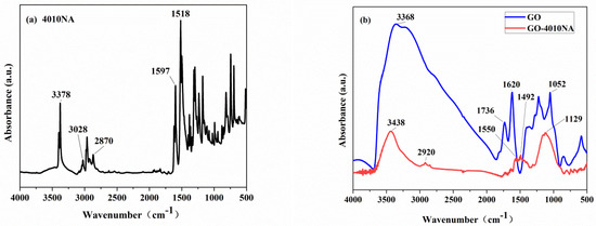 FTIR spectrum of (a) 4010NA and (b) GO and GO-4010NA.
