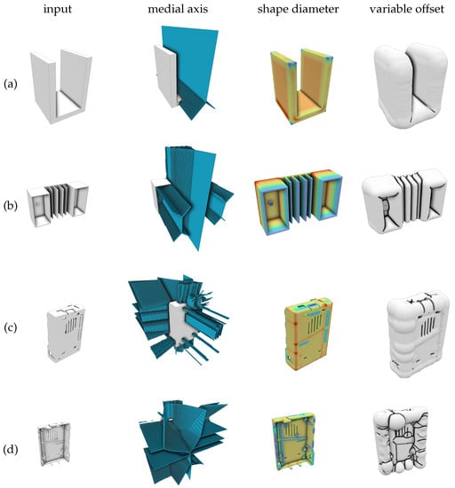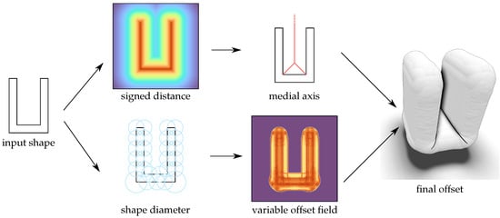 - Xia, H.; Tucker, P.G. Distance solutions for medial axis transform. In Proceedings of the 18th International Meshing Roundtable; Springer: Berlin/Heidelberg, Germany, 2009; pp. 247–265. [Google Scholar] [CrossRef] [Green Version]