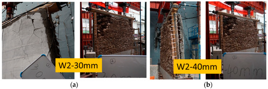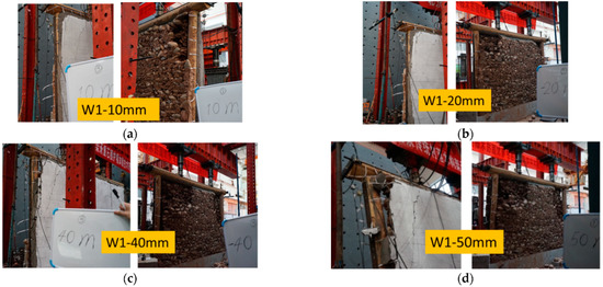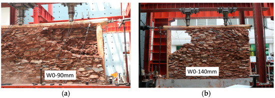 6.1. Experimental Phenomena of Strengthened Timber–Stone Hybrid Wall with PP Band Mesh