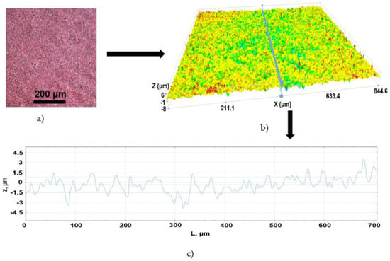 Microscopic observation of fabricated sample surface was done using an optical microscope (Olympus BX52, Olympus, Tokyo, Japan) with a CCD camera. Objectives with magnification from 5× to 50× in bright and dark field modes were used. In addition, surface roughness measurements were performed using a S Neox optical profilometer (Sensofar, Terrassa, Spain).