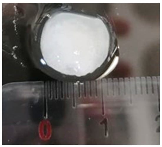 The macroscopic aspect of water-swollen hydrogels is shown in Figure 5C. It was observed that the visual characteristics of the hydrogel swollen in all the three tested media were similar, with all hydrogels showing a white color.