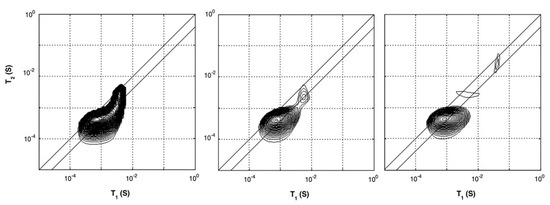 where the factor is the pore surface-to-volume ratio. These relaxation times can be used to gain useful information about the porous matrix [83,91,92,93,94,97] and possible changes over time when subjected to different environmental factors.