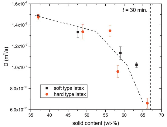 - Carter, F.T.; Kowalczyk, R.M.; Millichamp, I.; Chainey, M.; Keddie, J.L. Correlating Particle Deformation with Water Concentration Profiles during Latex Film Formation: Reasons That Softer Latex Films Take Longer to Dry. Langmuir 2014, 30, 9672–9681. [Google Scholar] [CrossRef]