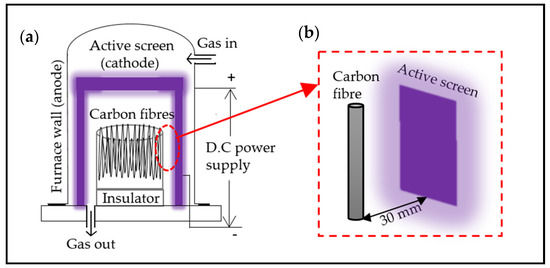 Schematic diagrams of (a) active screen plasma treatment and (b) carbon fibre arrangement [15].