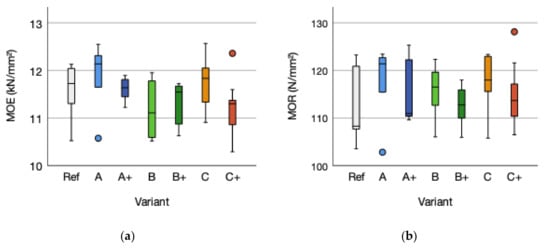 - Biadała, T.; Czarnecki, R.; Dukarska, D. Water resistant plywood of increased elasticity produced from European wood species. Wood Res. 2020, 65, 111–124. [Google Scholar] [CrossRef]