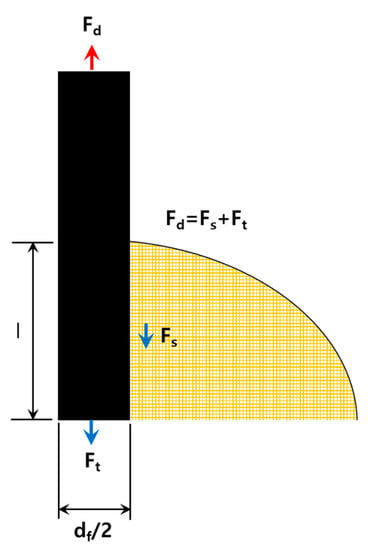 Figure 3 is a schematic diagram of the load applied to the fiber. The load Fd applied to the upper end of the fiber is the shear load Fs acting on the interface between the fiber and the resin and the tensile load Ft acting on the lower end of the fiber acting together. Assuming the same, it can show a difference of up to 2.8 times depending on the ratio of the fiber embedding length and the fiber cross-sectional diameter.