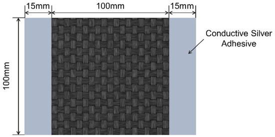 Geometric dimension of carbon fiber fabric sample and coating position of conductive silver adhesive.