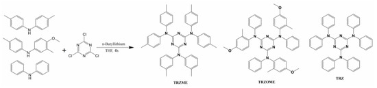- Yu, Y.J.; Wang, Y.T.; Liu, W.J.; Jia, X. Synthesis and properties of light conversion agents based on s-triazine. J. Shihezi Univ. (Nat. Sci.) 2018, 36, 529–533. (In Chinese) [Google Scholar]