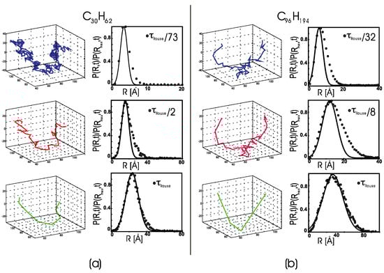 - Kopf, A.; Dünweg, B.; Paul, W. Dynamics of polymer “isotope” mixtures: Molecular dynamics simulation and Rouse model analysis. J. Chem. Phys. 1997, 107, 6945–6955. [Google Scholar] [CrossRef]