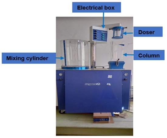 Phase 2: The sheet’s formation involved transferring a volume of 1 L of fibrous suspension from the mixing cylinder to the metering device (or doser). Then, the suspension was delivered to the subsequent stage “formation column of the sail” in a controlled and dosed manner; the suspension distribution was carried out on a metallic sieve.