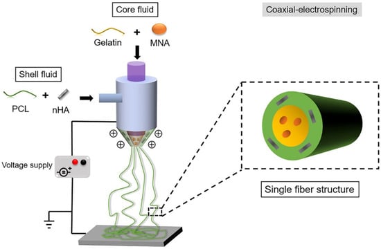 - Wang, Y.; Jiang, Y.; Zhang, Y.; Wen, S.; Wang, Y.; Zhang, H. Dual functional electrospun core-shell nanofibers for anti-infective guided bone regeneration membranes. Mater. Sci. Eng. C Mater. Biol. Appl. 2019, 98, 134–139. [Google Scholar] [CrossRef] [PubMed]