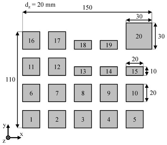 In addition to the exposure of square cross-sections, the influence of thin-walled geometries on the prediction accuracy of the neural network is assessed by manufacturing components with a wall thickness of 2 mm, 1 mm, and 0.5 mm, respectively. Virgin Polyamide 12 is used as the underlying material. The applied process layout and corresponding parameters for the validation of thin-walled samples are displayed in Figure 7.