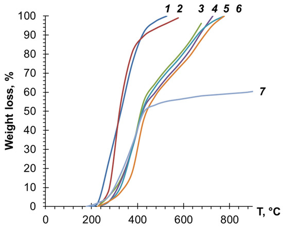 Thermal oxidation stability of carbon fiber was determined by thermovolumetry on a manometric installation [21]. It allowed measuring the kinetics of O2 absorption (oxygen pressure 20 kPa) and quantifying the mass loss of the sample at 600 °C for 60 min.