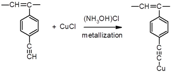 - Chauser, M.G.; Rodionov, Y.M.; Misin, V.M.; Cherkashin, M.I. Polymerisation of Acetylenes. The Structure and Electrophysical Properties of Polyvinylenes. Russ. Chem. Rev. 1976, 45, 348–374. [Google Scholar] [CrossRef]