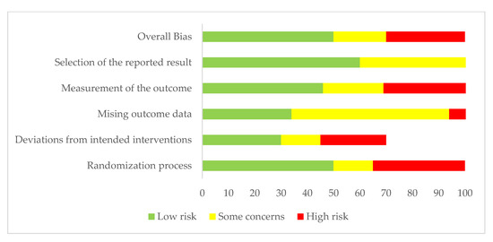 Two experts conducted the paper selection, both of whom declared they did not have conflicts in this selection. Figure 3, represented as a “traffic lane” chart, presents the risk of bias for each article selected.