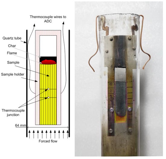 - Jiang, L.; Miller, C.H.; Gollner, M.J.; Sun, J.-H. Sample Width and Thickness Effects on Horizontal Flame Spread over a Thin PMMA Surface. Proc. Combust. Inst. 2017, 36, 2987–2994. [Google Scholar] [CrossRef]