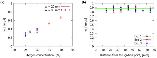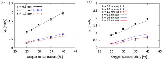 4.2. Dependence of the Flame Propagation Rate over GFRER on the Oxygen Concentration in the Gas Flow and on the Slab Thickness