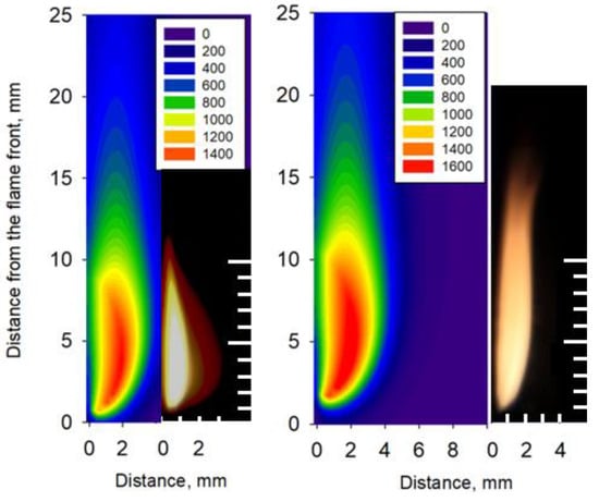 - Korobeinichev, O.P.; Karpov, A.I.; Bolkisev, A.A.; Shaklein, A.A.; Gonchikzhapov, M.B.; Paletsky, A.A.; Tereshchenko, A.G.; Shmakov, A.G.; Gerasimov, I.E.; Kumar, A. An Experimental and Numerical Study of Thermal and Chemical Structure of Downward Flame Spread over PMMA Surface in Still Air. Proc. Combust. Inst. 2019, 37, 4017–4024. [Google Scholar] [CrossRef]