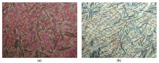 - Tykarska, M.; Czerwiński, M.; Żurowska, M.; Czerwí, M.; Urbańska, M. The temperature and concentration dependence of helical pitch in the mixtures of antiferroelectric compounds with the opposite helical twist sense. Liq. Cryst. 2011, 38, 561–566. [Google Scholar] [CrossRef]