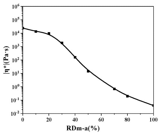 The minimum melt viscosity of the B-staged blend resins (TMR–50/RDm–a) with different RDm–a weight loadings.