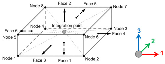 The finite element model uses eight-node linear hexahedral elements with reduced integration of type C3D8R available on ABAQUS®. More details about the element formulation is displayed in Figure 15 and additional information can be found in [64]. Table 6 summarizes details of the finite element discretization used in the Asymptotic Homogenization models.