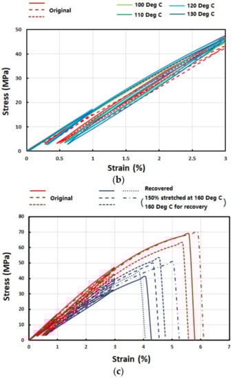 (c) After recovery, both the ultimate stress and Young’s modulus are lower than those of the original sample. The above-mentioned “paracrystalline” [37] might be the reason.
