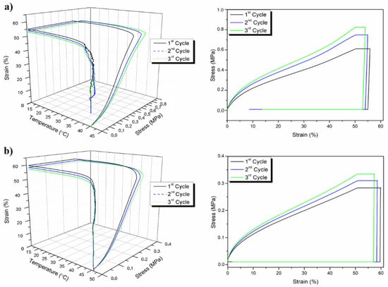 The shape-memory properties of a specific material can be studied through thermo-mechanical cycles, as reported in Figure 4.