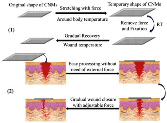 SMPs have been extensively used to develop scaffolds, implants, and biomedical devices due to their high biocompatibility and large shape deformation properties []. These purposes often require a quick shape recovery and sensitive response [], and one of the challenges has been improving these properties without altering others.