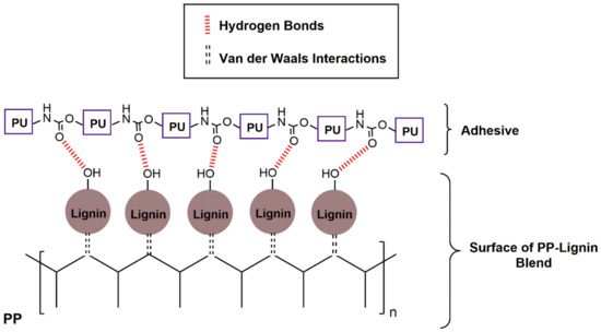 Proposed adhesion mechanism between PP-lignin composites and the adhesive.