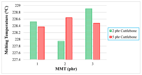 Effect of increasing MMT and calcined cuttlebone loading level on melting temperature.