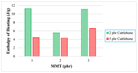 Effect of increasing MMT and calcined cuttlebone loading level on enthalpy of melting.